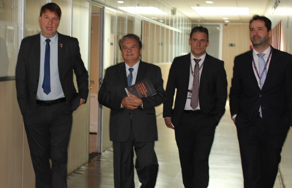 O Presidente da Ampcon e Procurador-Geral do MPC-MG, Marcílio Barenco, com integrantes da mesa. Acervo pessoal.